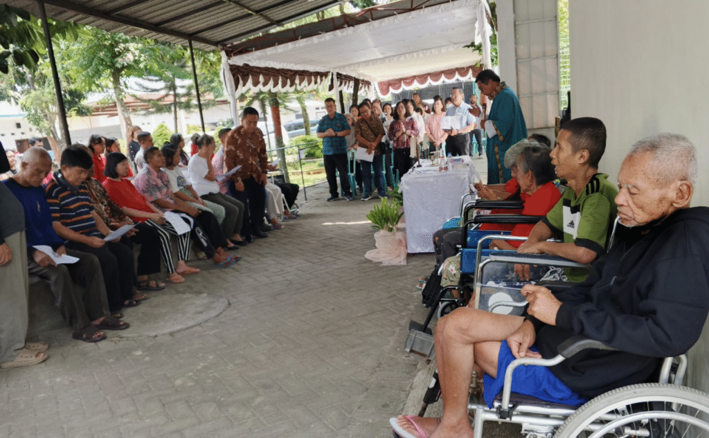 Lawang, 3 Agustus 2025 — St. Yokobus Paroki Roh Kudus Surabaya mengadakan kegiatan bakti sosial (baksos) bersama warga Panti Karya Asih. Acara ini menjadi momen penuh kasih dan kebersamaan yang bertujuan untuk berbagi sukacita sekaligus mempererat ikatan sosial antara umat paroki dengan para penghuni panti.